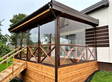 Gaminame ir montuojame skaidrius tentus terasoms, pavėsinėms, verandoms ir kitoms lauko erdvėms. Kiekvieną sprendimą pritaikome individualiai pagal jūsų poreikius, kad erdvė būtų apsaugota nuo vėjo ir lietaus, bet išliktų šviesi, estetiška ir jauki.