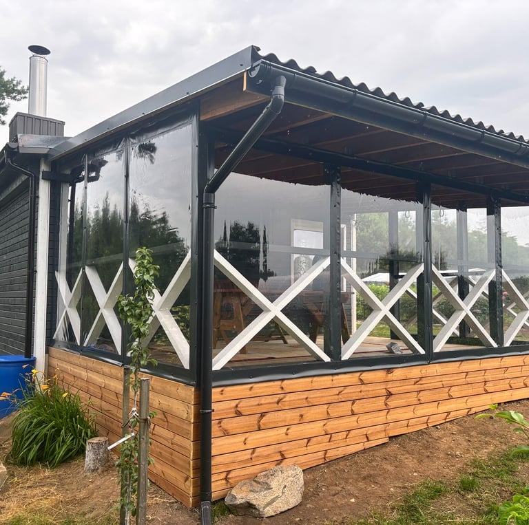 Gaminame ir montuojame skaidrius tentus terasoms, pavėsinėms, verandoms ir kitoms lauko erdvėms. Kiekvieną sprendimą pritaikome individualiai pagal jūsų poreikius, kad erdvė būtų apsaugota nuo vėjo ir lietaus, bet išliktų šviesi, estetiška ir jauki.